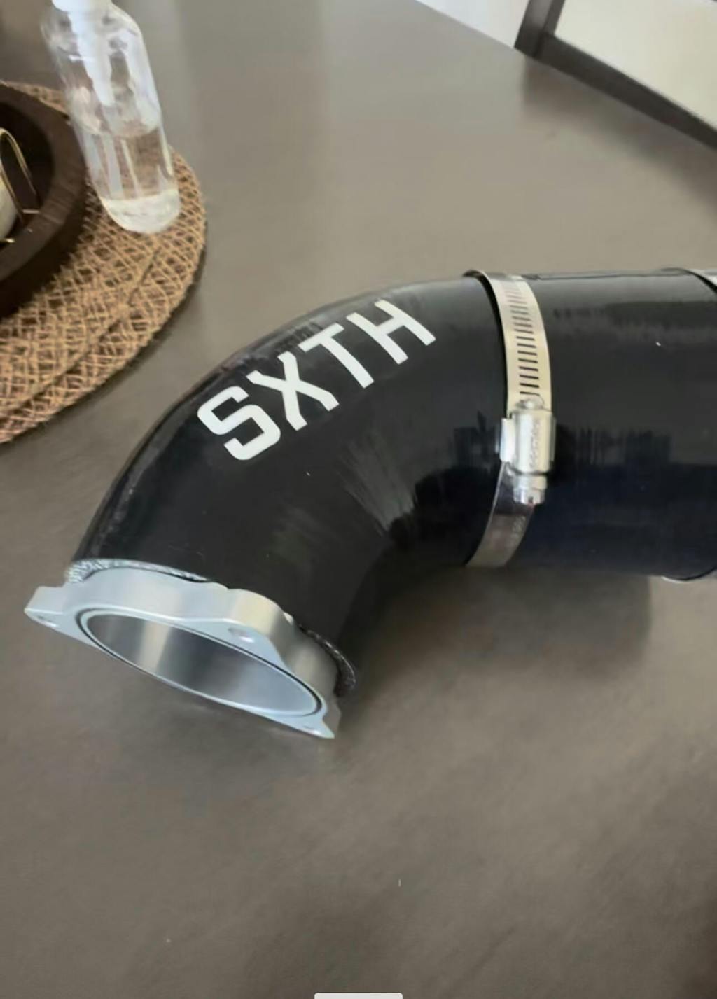 With gains up to 10whp on the OEM turbocharger our SXTH turbo inlet is the final piece to complete intake performance. The inlet is designed in our CAD software using 3D scans to ensure the best fitment and optimal flow. The inlet comes with a connecting coupler and new hardware for a complete, bolt-on installation to your SXTH Intake system.