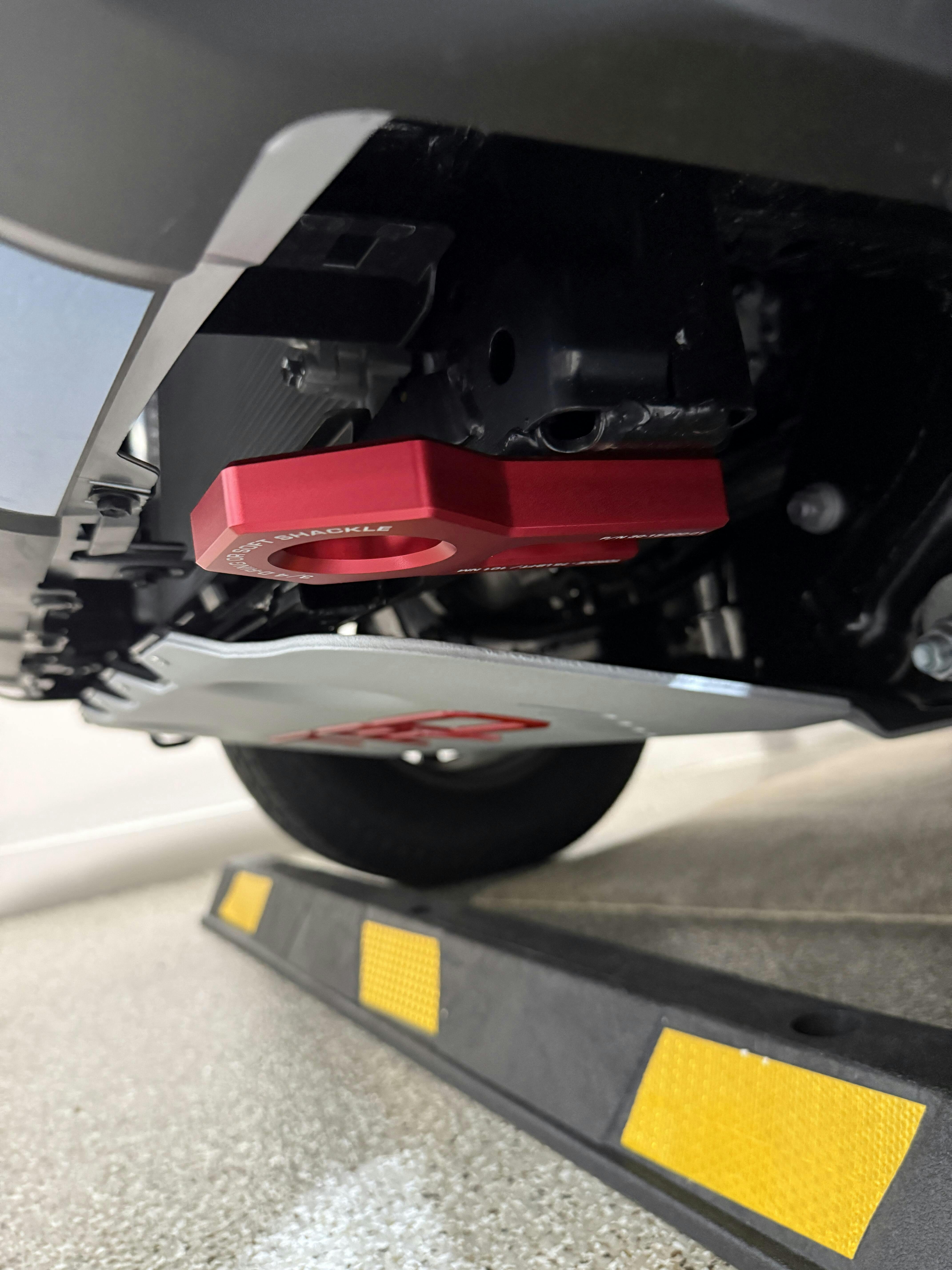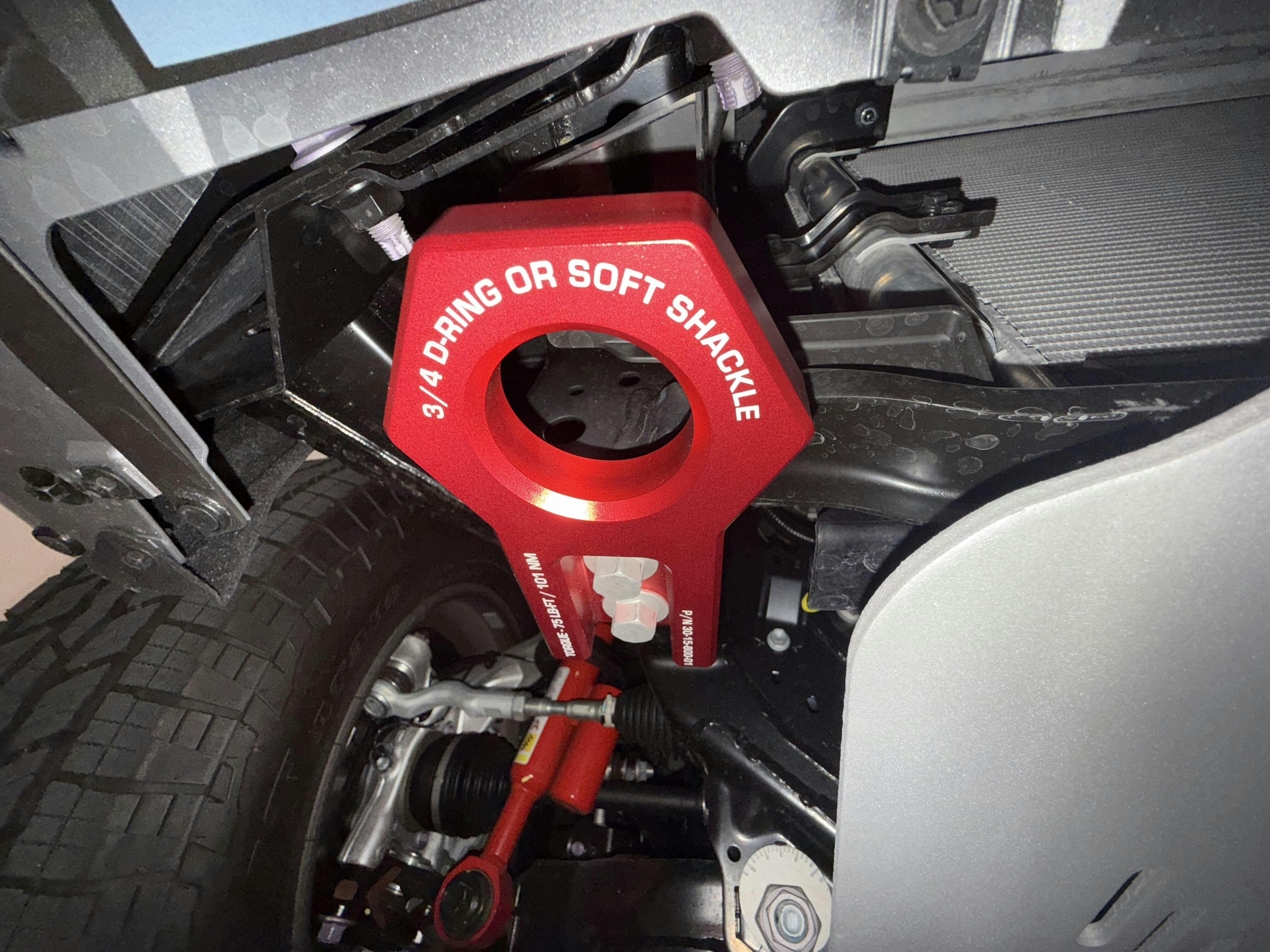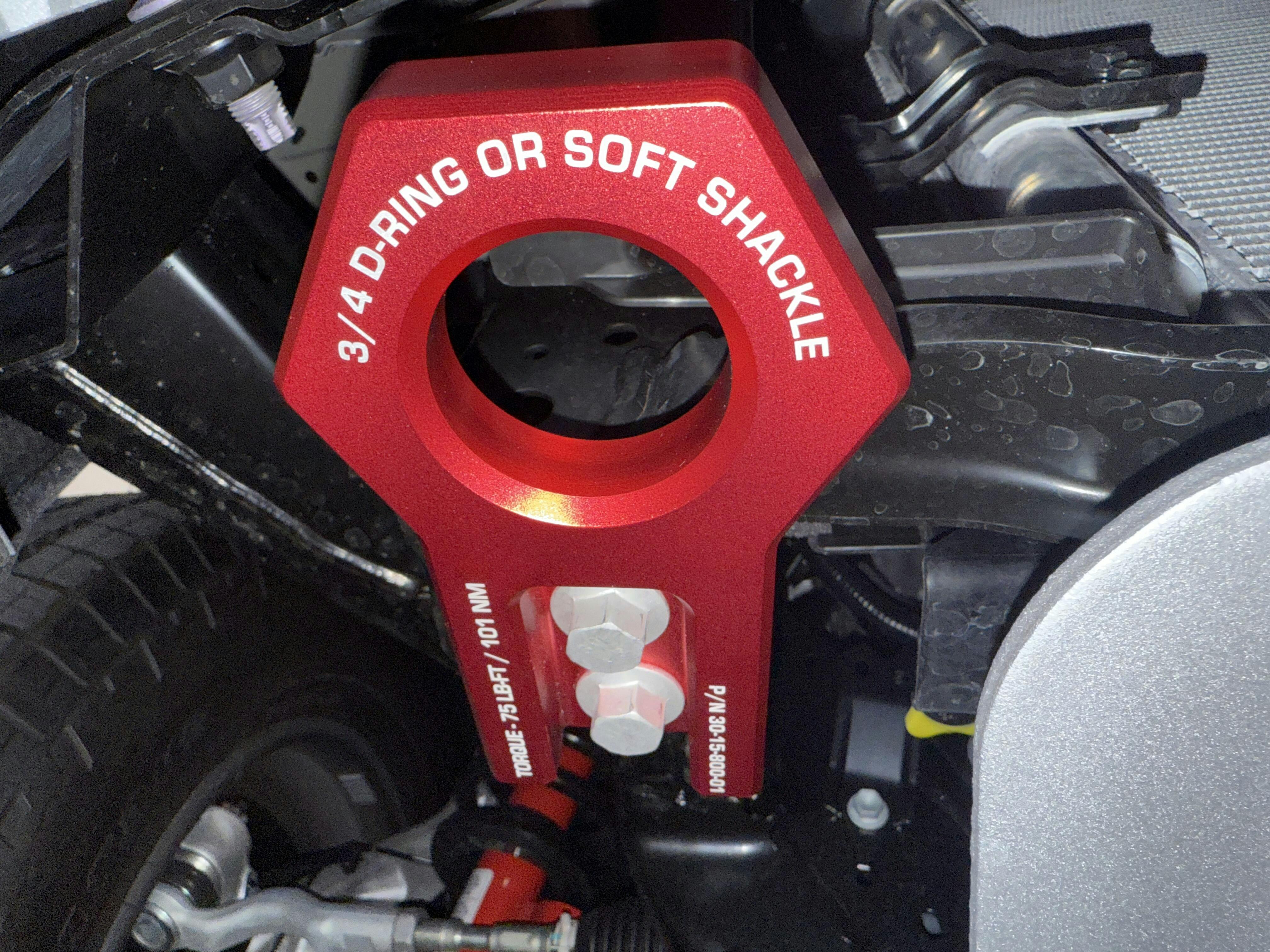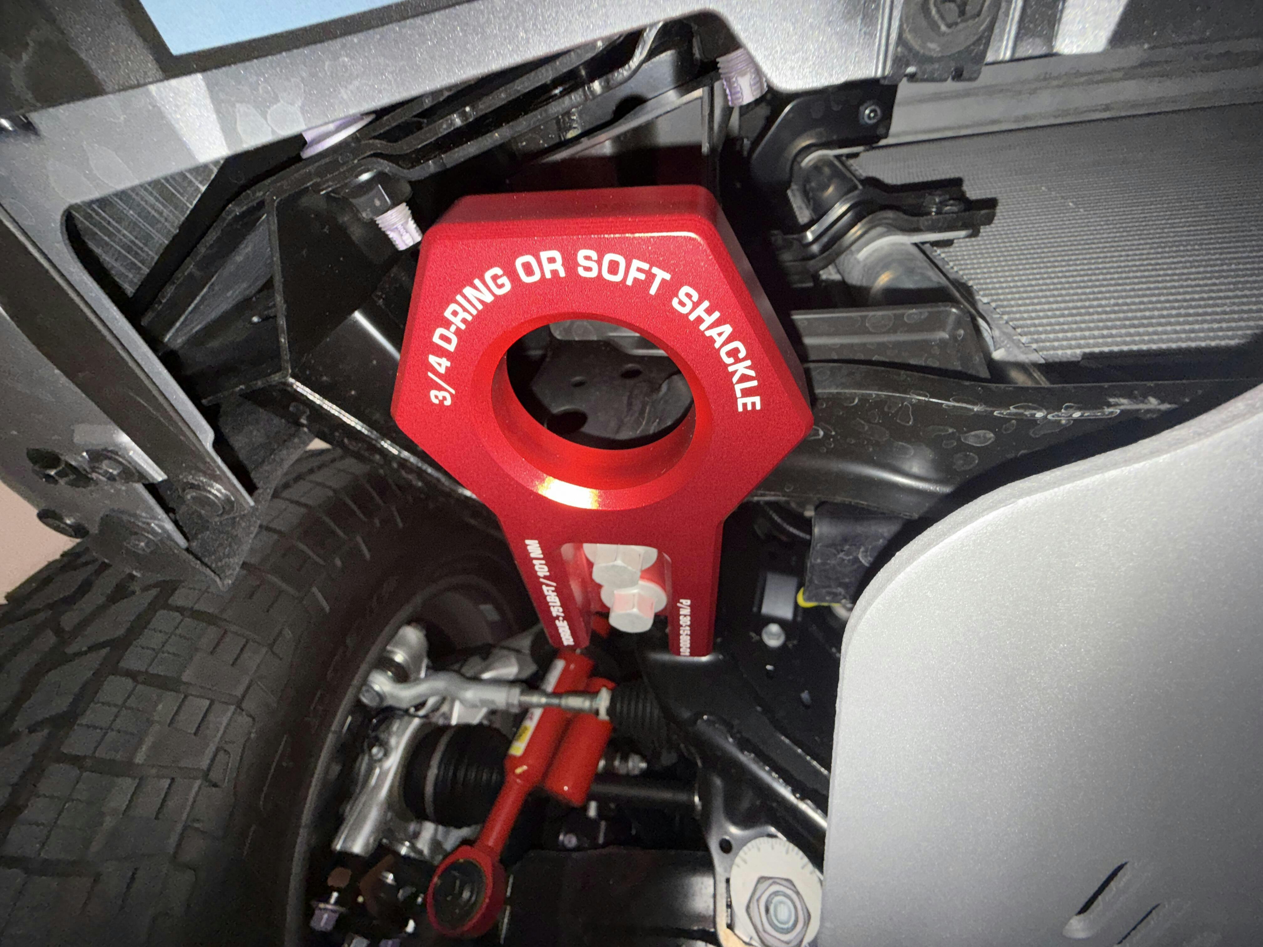 These bolt on directly to the vehicle, replacing the OEM attachments. Our parts also extend the attachment reach by 1.5 inches, reducing the risk of damage to other body parts during recovery operations. The Front Recovery Points are compatible with most 3/4 D Rings and soft shackles under 1.75 inches in diameter.