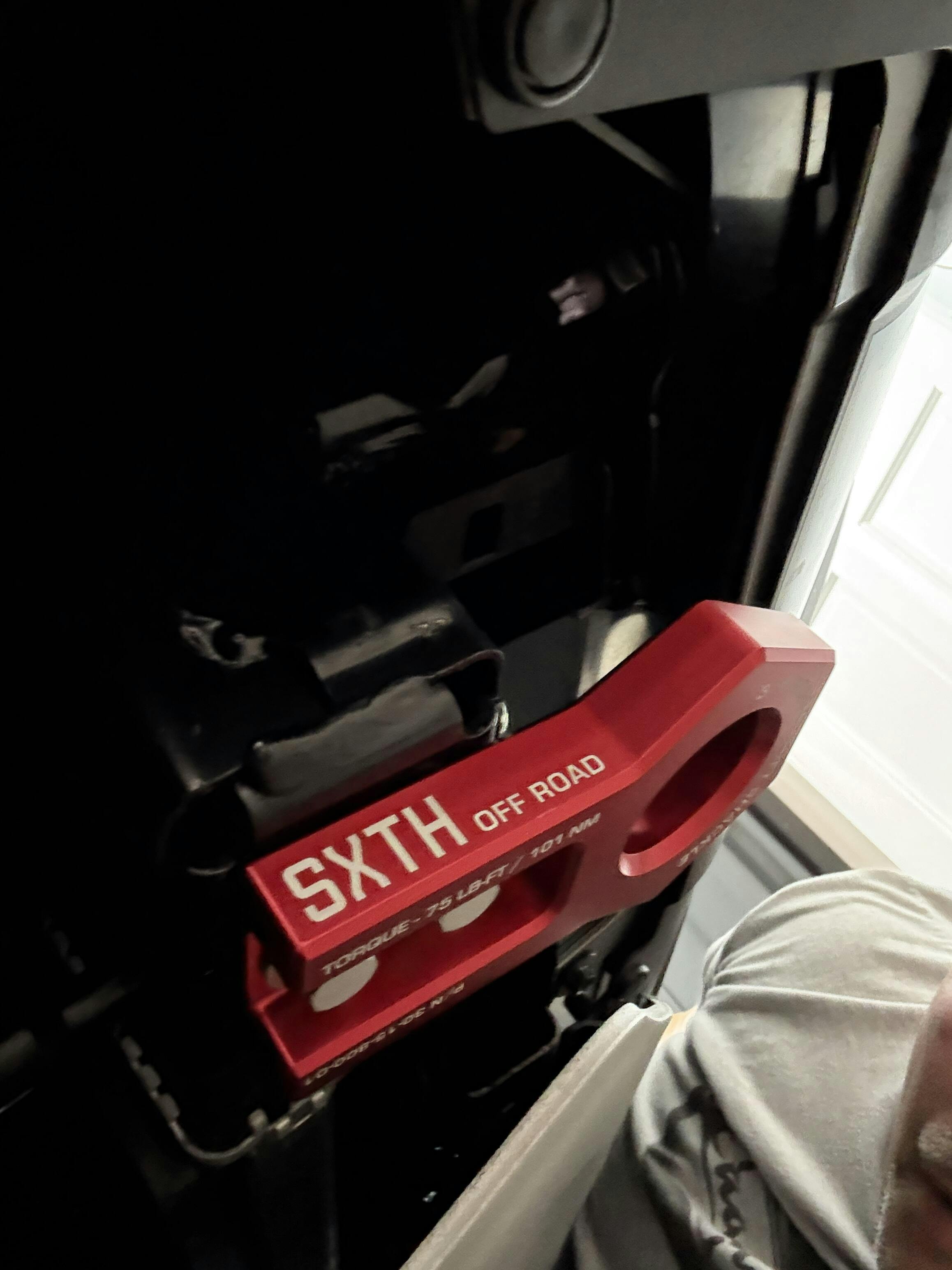 The Front Recovery Points are available in either black or red anodized finishes, designed for harsh environments. Each point is laser engraved with torque and recovery specifications, adding both functionality and style to your 2024+ Toyota Tacoma, 2025+ Toyota 4Runner, and 2024+ Land Cruiser LC250.